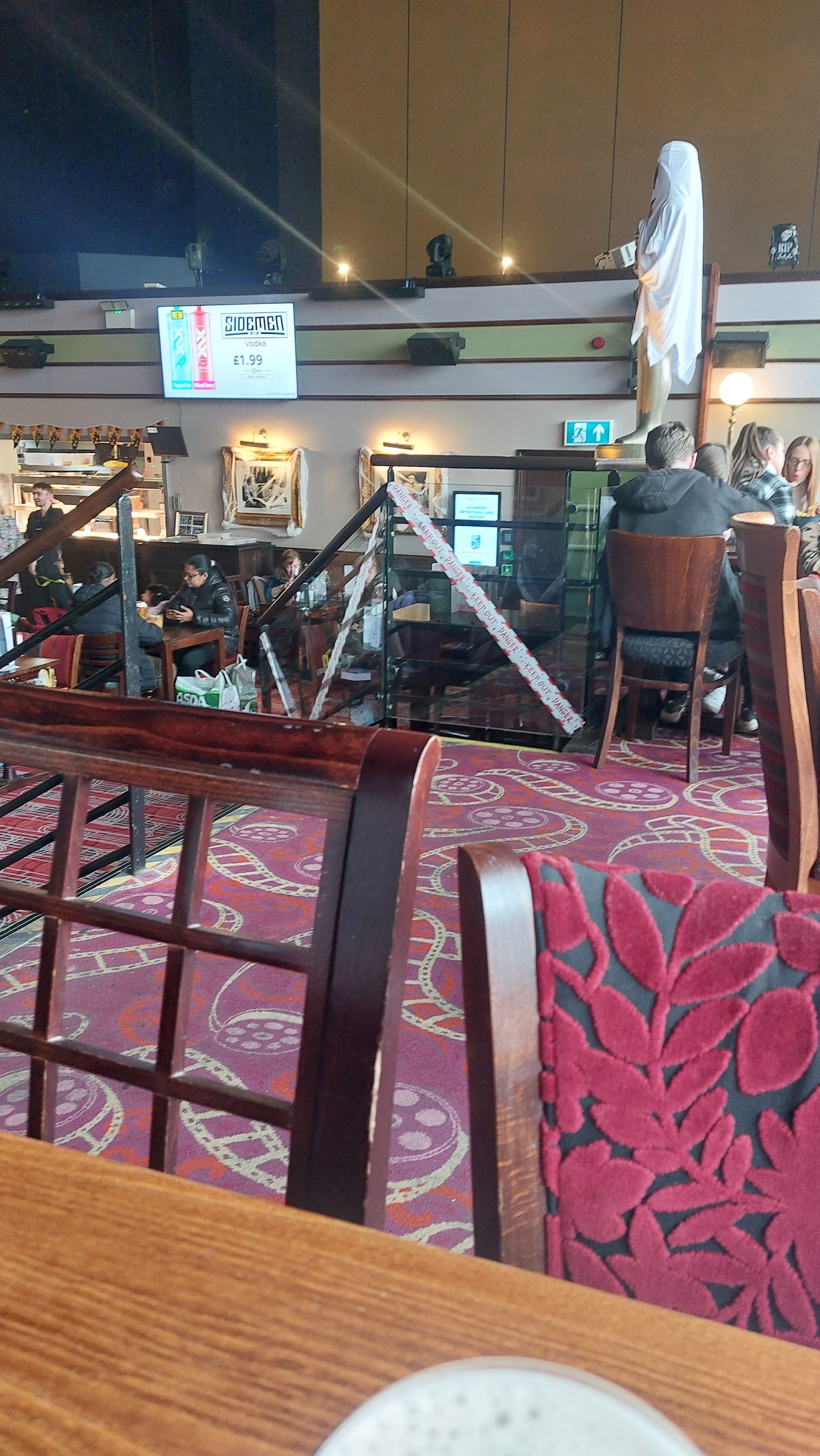 The Regal is a vibrant Wetherspoon pub in Gloucester. It has embraced the Halloween spirit this year. The pub has transformed its atmosphere into something reminiscent of a zombie apocalypse. Some staff members seem less than thrilled about the festive changes, but the lively ambiance continues to draw in patrons. I settled in at my usual haunt, Table Four. I couldn’t help but feel a mix of excitement. Curiosity filled me as well. I ordered my favorite Korean chicken for lunch. I eagerly awaited its arrival. I observed a staff member dressed as a zombie gracefully attending to customers. It sparked a thought: I hope that meat cleaver stuck in her head isn’t causing her too much discomfort!